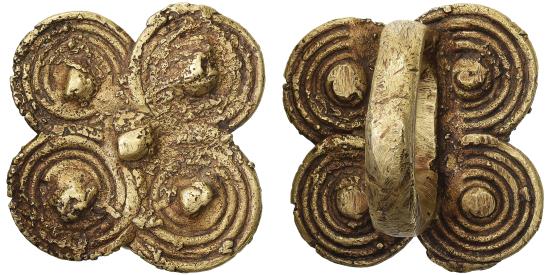 | | Ivory Coast, Ring coin, XVIIIth-XIXth Century, Brass, | | | Baoulé or Senufo clover ring-coin. The clover measures 34.2x36 mm long and the ring, 27.5 mm. | | FEATURES |