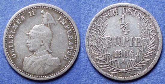 "1/4 RUPIE 1906 A", "DEUTSCH OSTAFRIKA" above