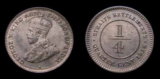 1916 Straits Settlements 1/4 Cent KM #27 BU Red