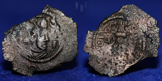 SASANIAN King Khosrau I (531-579 AD) Copper Pashiz. Mint Istakhr ? Undated 1gm, 19mm, VF & R