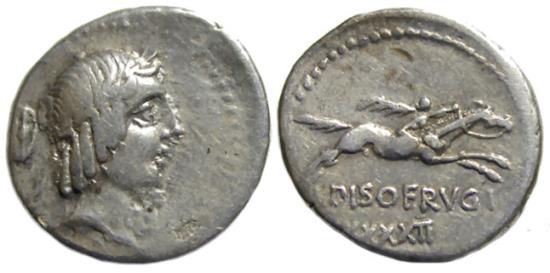 C. Piso L. f. Frugi : AR Denarius : Galloping Horseman, XXXXII below