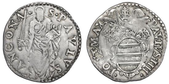 Papal State. Rome. Paul IV (1555-1559) Giulio. Ancona. 3,12 gr. – 27,4 mm. Munt. 40/4. VF\XF