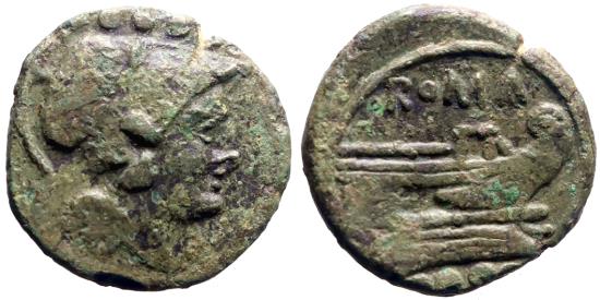 Roman Republic AE21 Triens. Minerva / Galley Prow. Sardinia