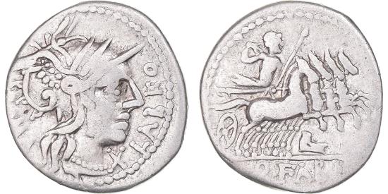 | | Coin, Fabia, Denarius, 124 BC, Rome, , Silver, Crawford:273/1 | | | Q. Fabius Labeo | | FEATURES |