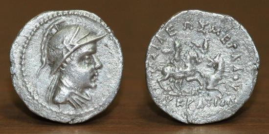 | Baktrian Kingdom, Eukratides I, AR Drachm, 170-145 BC. |