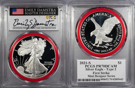2021-S Proof Silver Eagle 1 Dollar (Silver) Type 2; Mint Designer Series; First Strike PCGS PR-70 DCAM