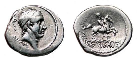 Obverse: ANCVS below, diademed head of Ancus Marcius right; behind, lituus. Reverse: PHILIPPVS on left, equestrian statue right on arcade of five arches; within arches, AQVA MARC. Very nice exemplar of this scarce and interesting issue, representing to Ancus Marcius, the fourth king of Rome, in the obverse and the Acqua Marcia, one of the earlier acueducts of Rome, in the reverse. EF-/EF condition, conserving complete details in both sides, very bold reliefs and high quality silver. MUCH BETTER IN HAND THAN IN PHOTO (Really!) Crawford 425/1; Sydenham 919. Rome mint, 57 BC. 3,8 g - 18 mm -------------------------------------------------------------------------------------------------- Visit our site about Numismatics and Archaeology: aeternitas-numismatics.com |