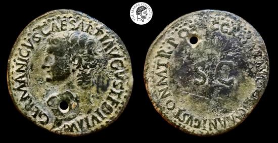 Germanicus. AE As. Died 19 AD. Rome mint. Great details. Better in hand. Very Fine.