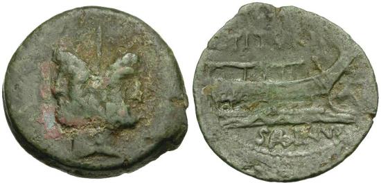 89 BC - Roman Republic. L. Tituri L.f. Sabinus Æ As