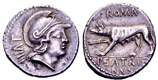 Rev. ROMA; she-wolf walking to the left on ground line; in exergue: P•SATRIENUS.