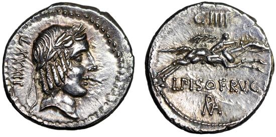 L Calpurnius Piso Frugi AR Denarius "Apollo & Racing Horse" Extremely Fine