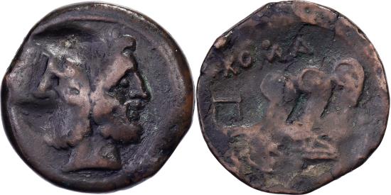 | | Vibia, As, 90 BC, Rome, Bronze, , Crawford:342/7 | | | Laureate head of Janus., Three prows right; below, moneyer's name., C. Vibius Pansa. RRC 342/7, ROMA | | FEATURES |