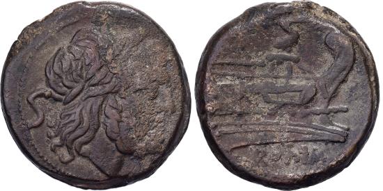 | | Anonymous, Semis, 215-212 BC, Rome, Bronze, , Crawford:41/6 | | | Laureate head of Saturn, right. Behind, S (denomination mark), Prow, right. Above, S (denomination mark), RRC 41/6., ROMA | | FEATURES |