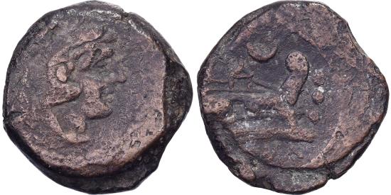 | | Anonymous, Quadrans, 207 BC, Rome, Bronze, , Crawford:57/6 | | | Head of Hercules, right. Behind, three pellets (denomination mark), Prow, right. Above, crescent. Below, three pellets (denomination mark), Issuer: Crescent 1 (Republican Moneyer), ROMA | | FEATURES |