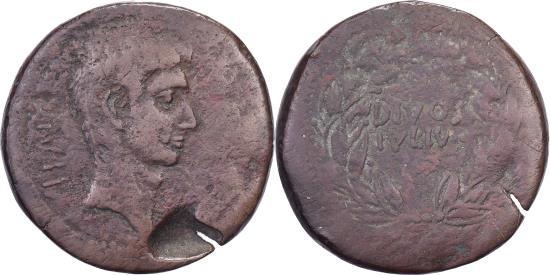 | | Octavian, Æ, ca. 38 BC, Italian Mint, Bronze, , RPC:I-621 | | | Head of Octavian, right, bearded. Before, star., Legend within laurel wreath., RRC 535/2., DIVI·F, DIVOS / IVLIVS | | FEATURES |