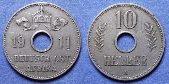 German East Africa, Wilhelm II 1911 A, Copper-Nickel 10 Heller