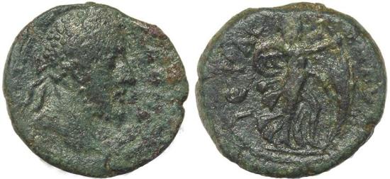 Reverse: ΙΕΡΑC ΒΥΒΛΟΥ, Isis Pharia standing right, wearing lotus, holding sail