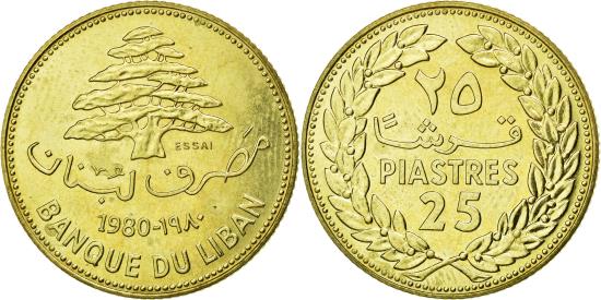 | | Coin, Lebanon, 25 Piastres, 1980, , Nickel-brass, KM:E13 | | | FEATURES |