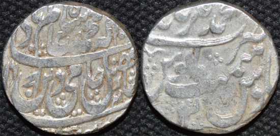 This coin is an unpublished variety of KM 136.1 (Awadh). Faizullah Khan had gained control of a large swath of territory north of the Ganges valley and it seems he replaced the cross control mark of Awadh with a flag or pennant. The RY 12 is not recorded, nor is the mint name Muhammadnagar for Tanda.